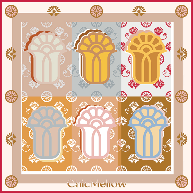 در گلورا، گل های نیلوفر با شش پر لطیف، با ظرافتی معماری شده کنار هم نشسته اند؛ گویی باغی جاودان در بستر پارچه شکل گرفته. حاشیه ها با پترن های نیلوفر ریز تزیین شده اند. همچون دیواره های کاخ های کهن که روح زیبایی را پاس میداشتند.